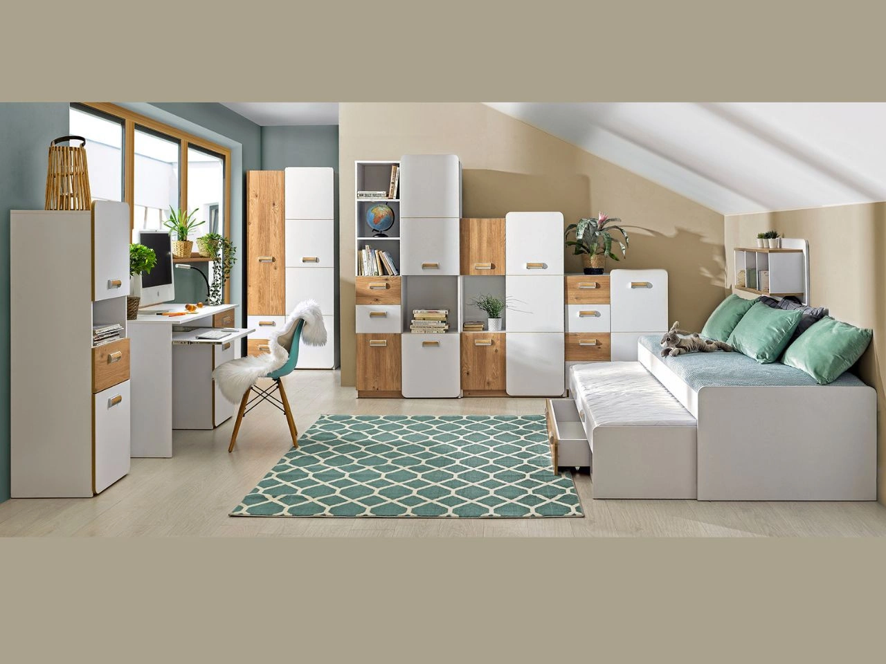 Die Einrichtung eines Jugendzimmers verbindet Ästhetik mit einem praktischen Ansatz für den Alltag. Möbel für das Jugendzimmer sollten mit dem Tempo des Lebens von Kindern und Teenagern mithalten und komfortable Plätze zum Lernen, Entspannen und Aufbewahren bieten. Jugendkleiderschränke, Schreibtische, Kommoden und Regale müssen funktional, geräumig und langlebig sein, gleichzeitig aber einen modernen Einrichtungsstil verkörpern, der sich leicht an wechselnde Geschmäcker und Lebensphasen anpassen lässt.