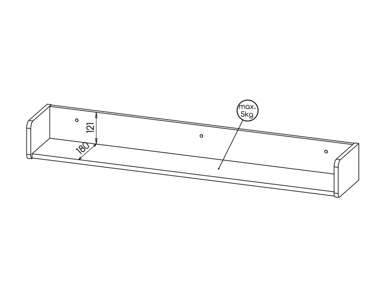 Der Korpus besteht aus laminierter Spanplatte und ist für den täglichen Gebrauch ausgelegt. Schwarze Kanten schließen die Form optisch sauber ab und erhöhen zugleich die Widerstandsfähigkeit der Kanten gegen kleinere mechanische Beschädigungen. Die offene Konstruktion ermöglicht eine ansprechende Präsentation von Büchern, Dekorationen, Bilderrahmen oder Pflanzen, ohne die Wand optisch zu beschweren.
