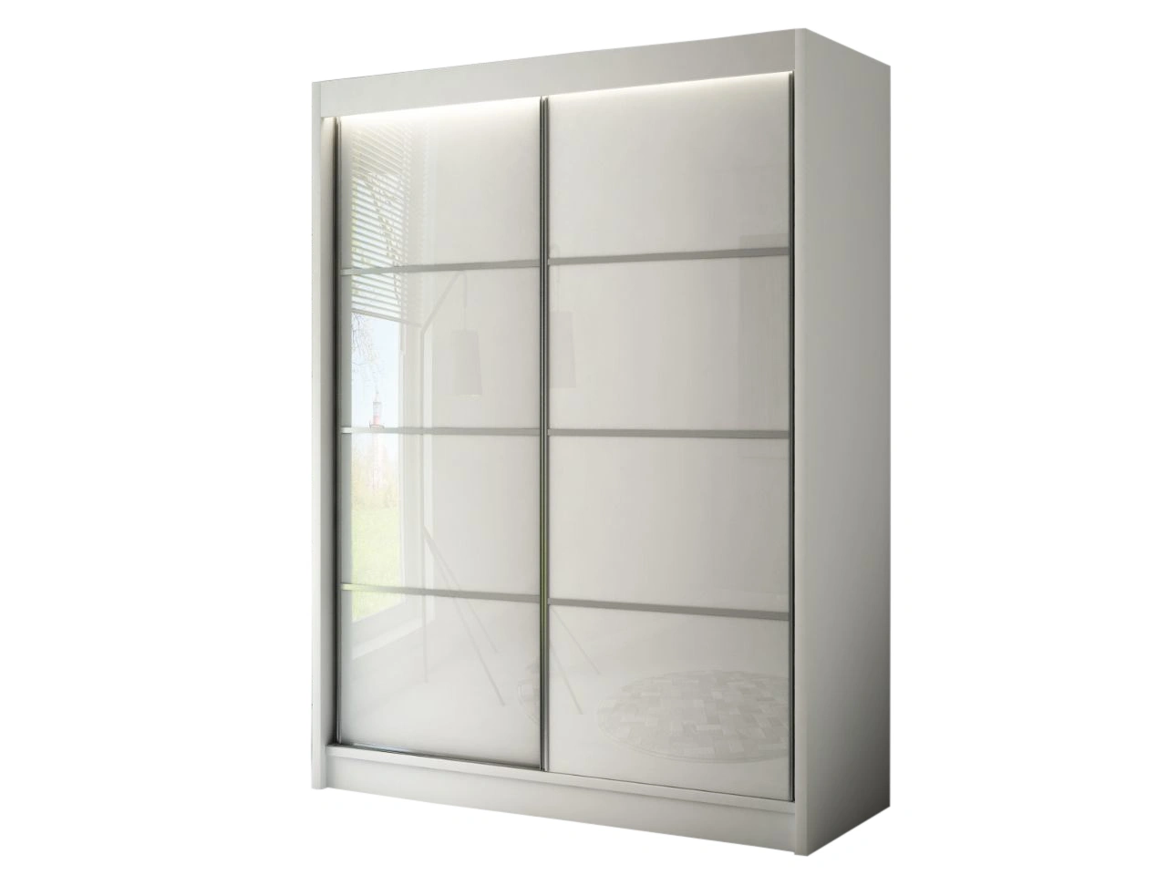 Schiebetürenschrank mit Sprossen 150 cm mit LED-Beleuchtung Ponti Weiß