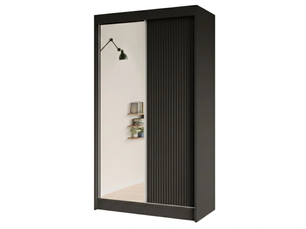 Schiebetürenschrank mit geriffelter Front und Spiegel 120 cm Fano Schwarz