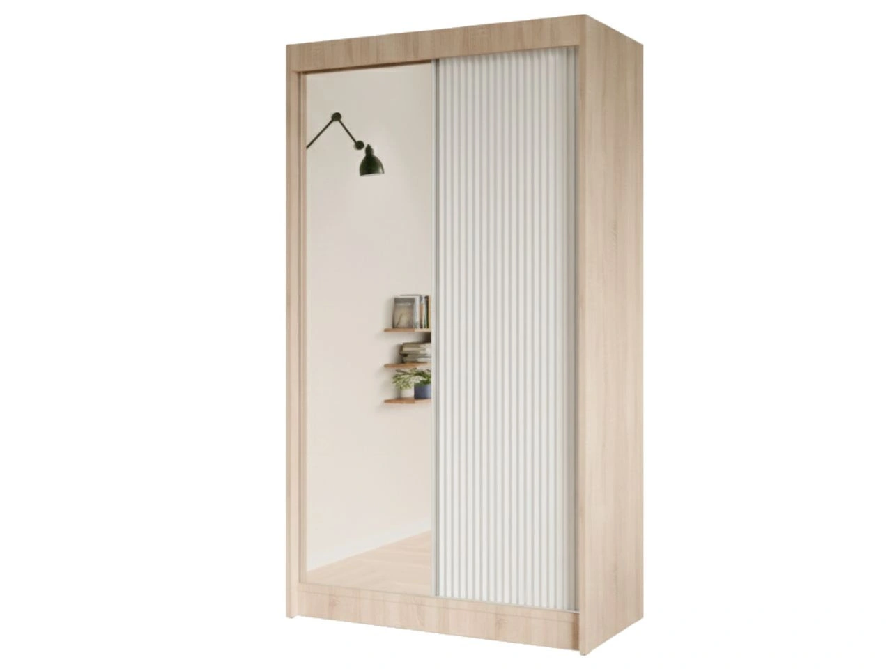 Schiebetürenschrank mit geriffelter Front und Spiegel 120 cm Fano Eiche Sonoma, Weiß