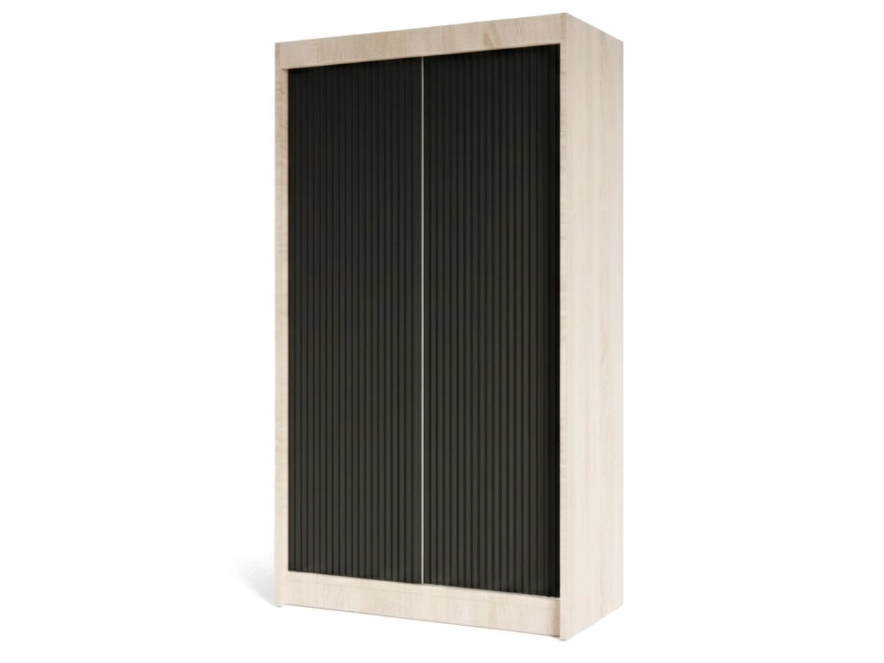 Schiebetürenschrank mit geriffelter Front 120 cm Fano Eiche Sonoma, Schwarz