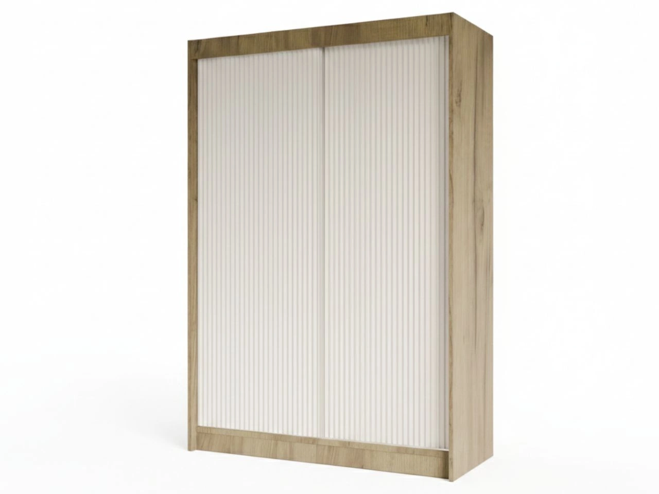 Schiebetürenschrank mit geriffelter Front 150 cm Fano Handwerk Goldene Eiche, Weiß