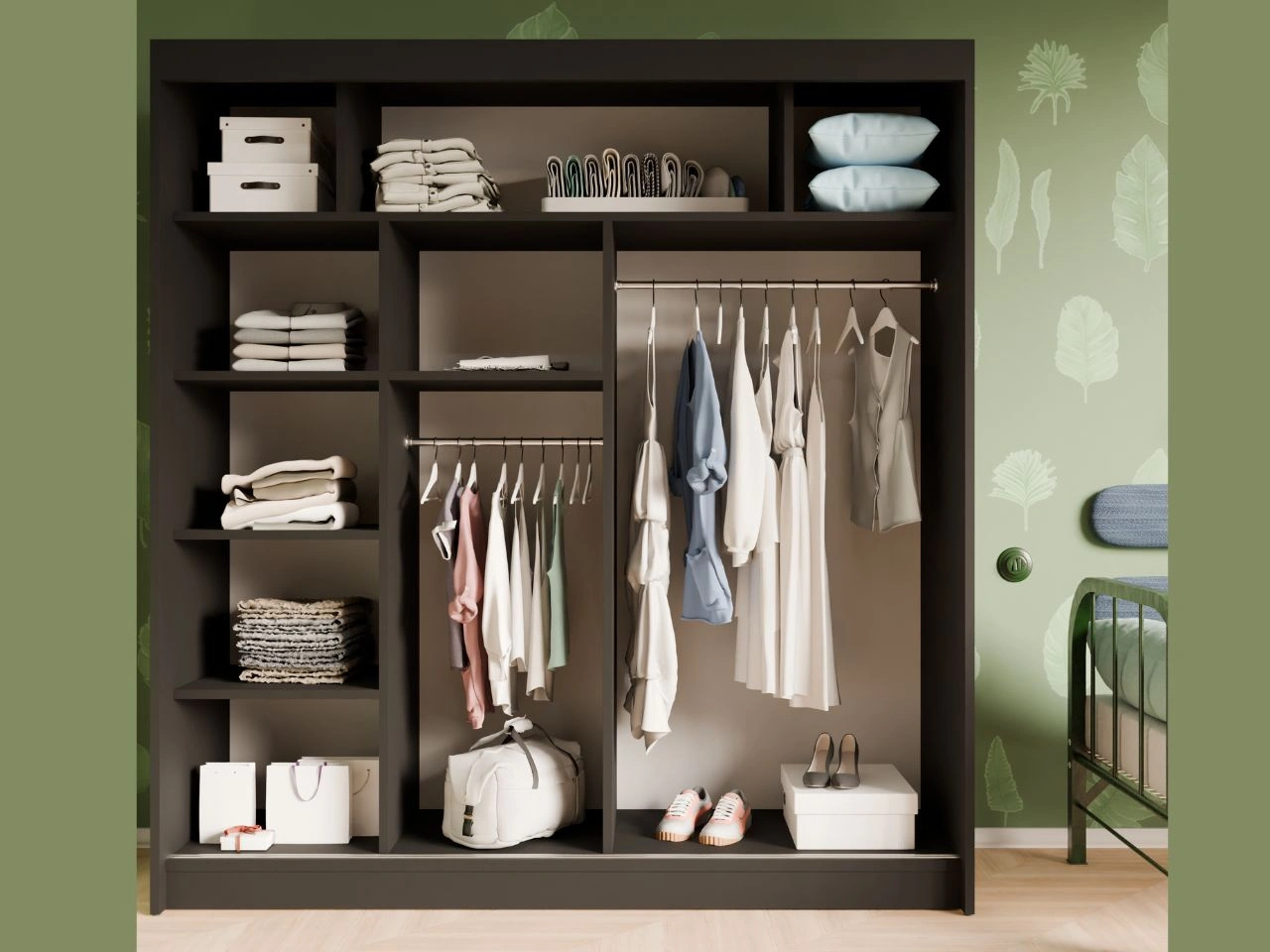 - Innenraum ausgestattet mit Kleiderstangen und praktischen Einlegeböden
