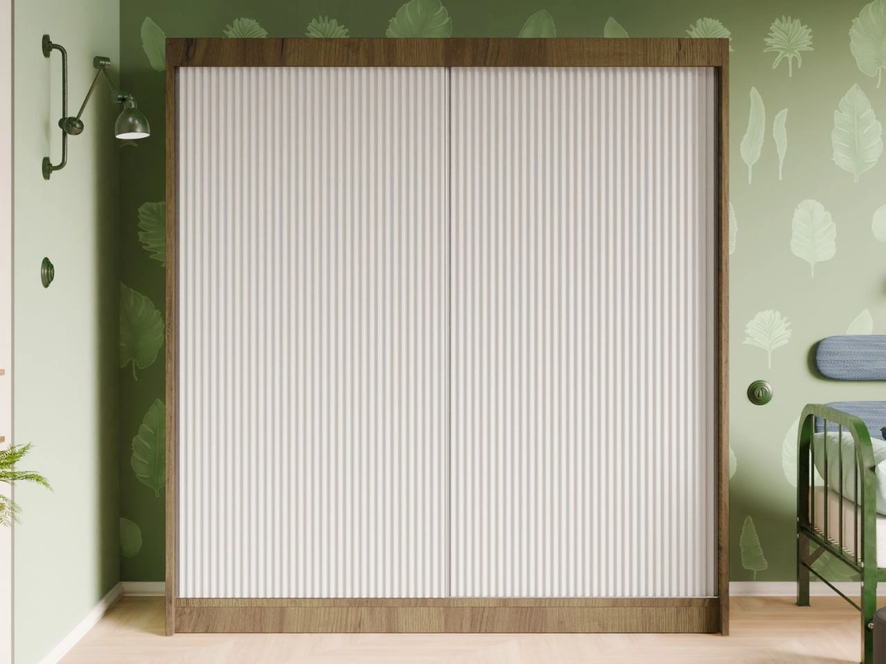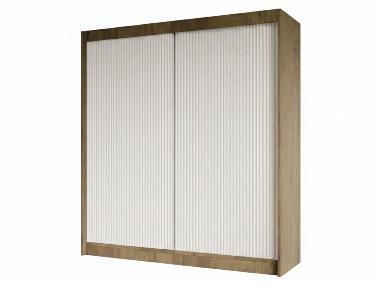 Schiebetürenschrank mit geriffelter Front 200 cm Fano Handwerk Goldene Eiche, Weiß