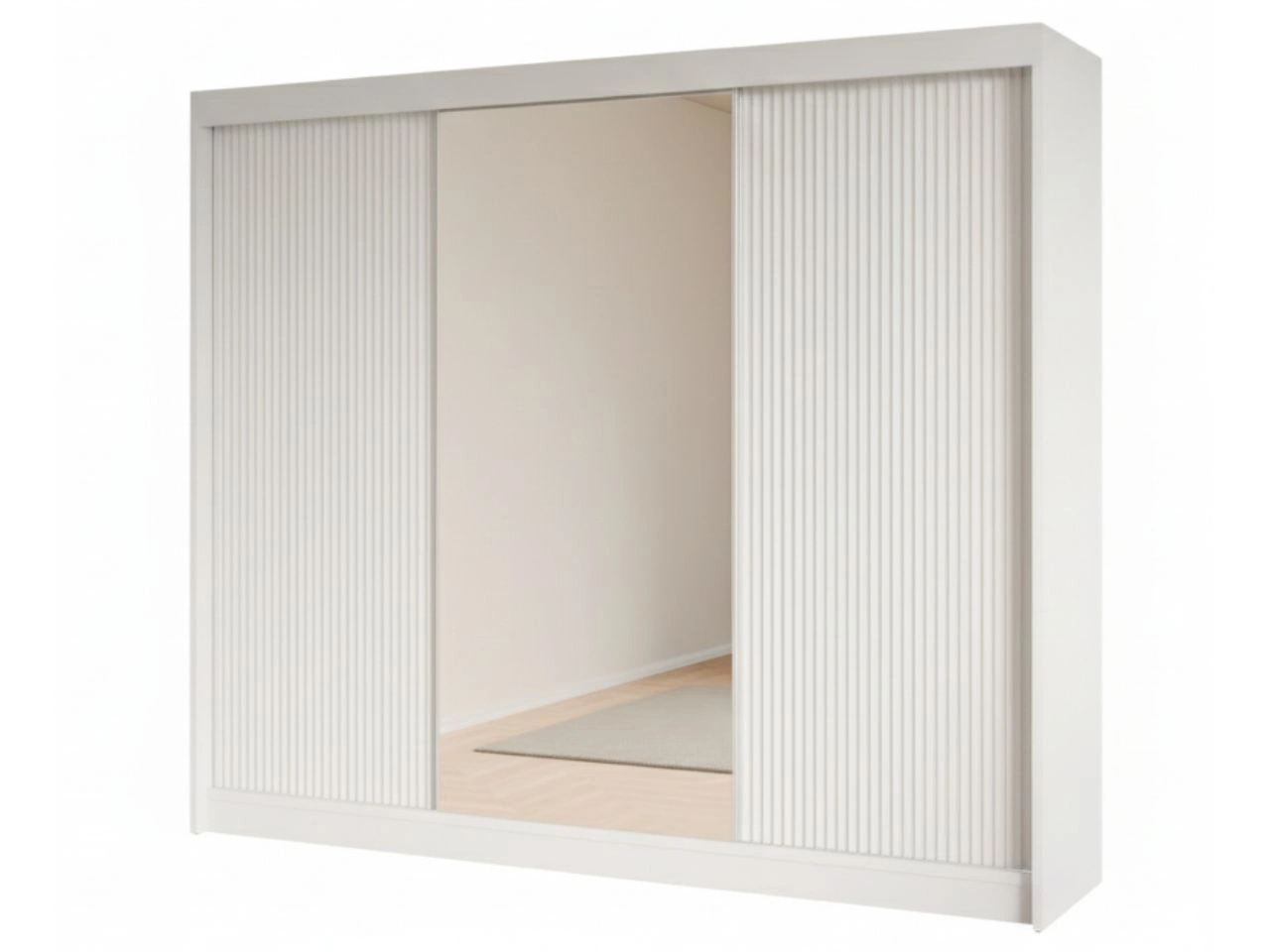 Schiebetürenschrank mit geriffelter Front und Spiegel 250 cm Fano Weiß