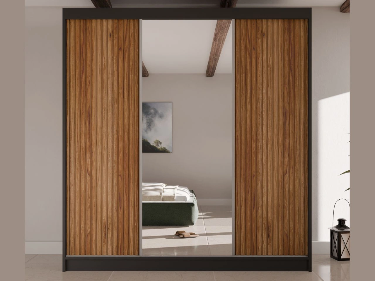 Schiebetürenschrank mit geriffelter Front und Spiegel 200 cm Rivas Schwarz, Catania
