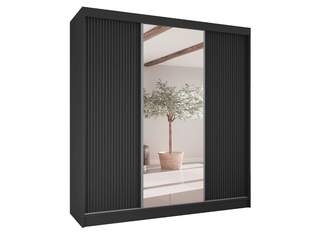 Schiebetürenschrank mit geriffelter Front und Spiegel 200 cm Rivas Schwarz