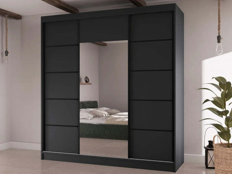 Schiebetürenschrank mit Spiegel 200 cm Maia Schwarz