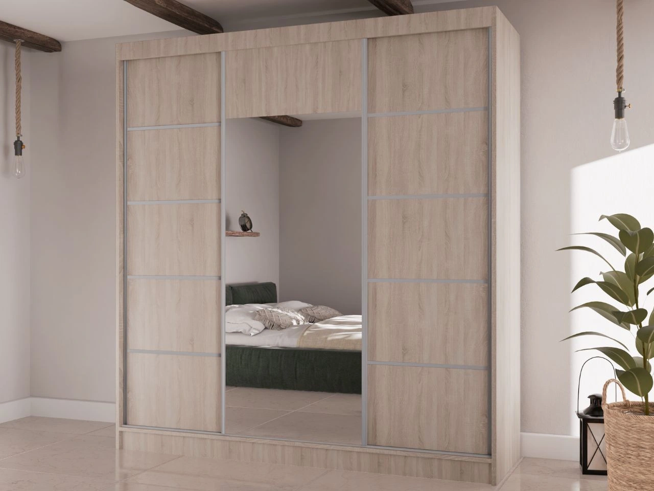 Du ziehst an: Schiebetürenschrank mit Spiegel 200 cm Maia Eiche Sonoma