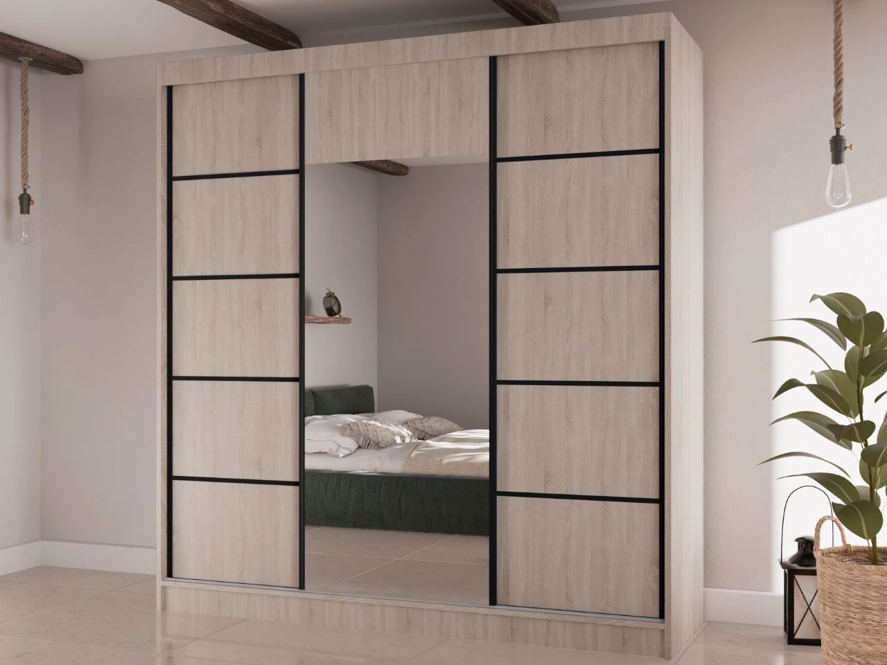 Du ziehst an: Schiebetürenschrank mit Spiegel 200 cm Maia Eiche Sonoma
