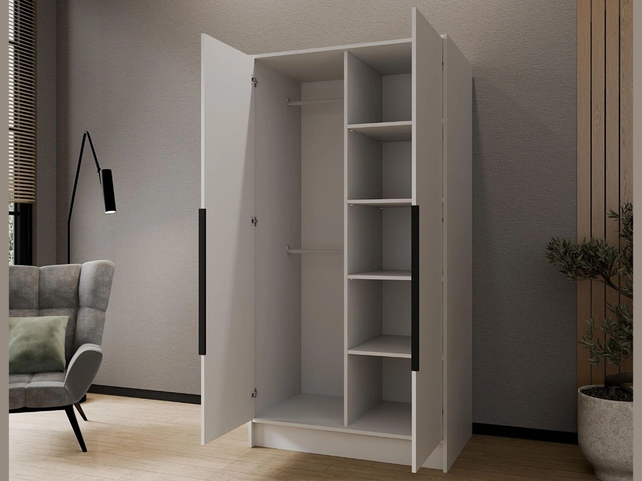 Der Innenraum des Schranks Lucca wurde auf maximale Funktionalität und Flexibilität ausgelegt. Es besteht die Möglichkeit, zwischen verschiedenen Innenvarianten zu wählen, sodass der Schrank optimal an individuelle Bedürfnisse angepasst werden kann. Der Stauraum bietet ausreichend Platz für Kleidung, Accessoires und weitere Haushaltsgegenstände.