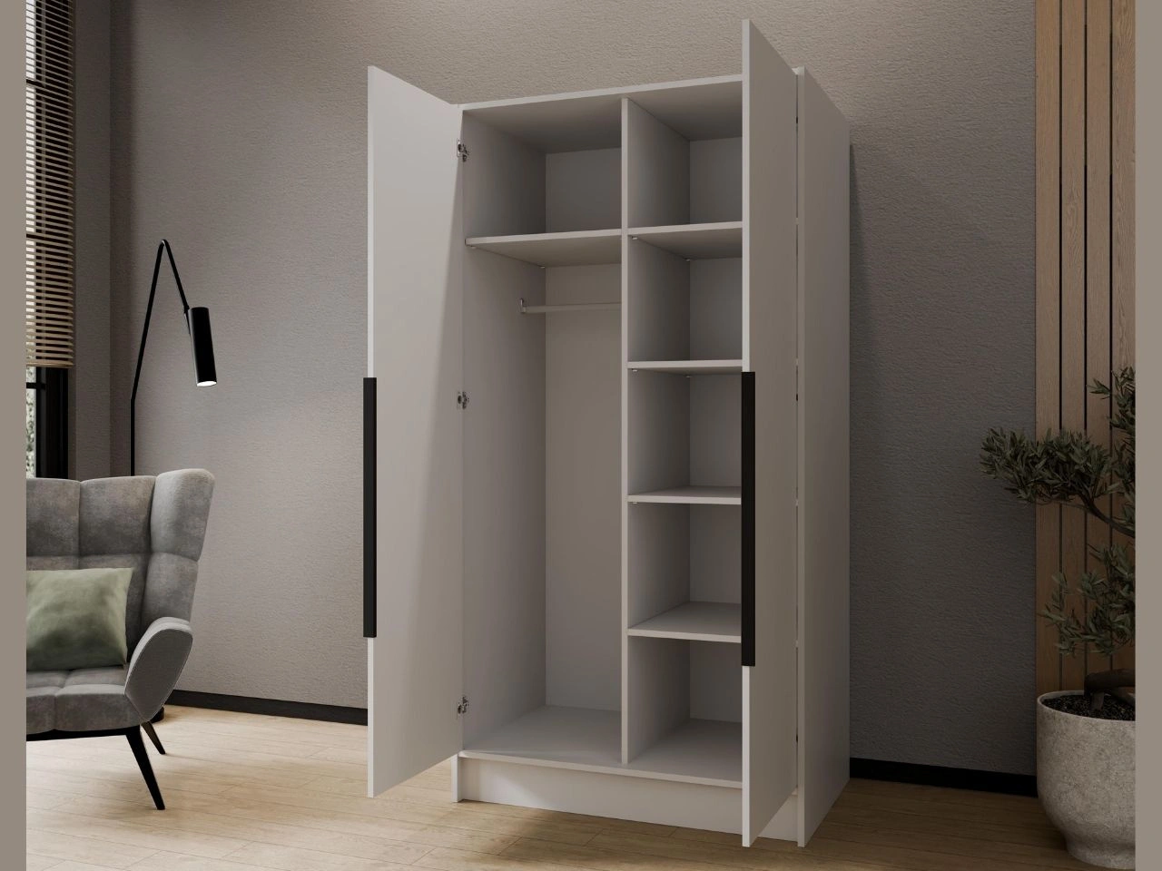 Kleiderschrank mit Spiegel 100 cm Lucca Weiß mit schwarzen Griffen