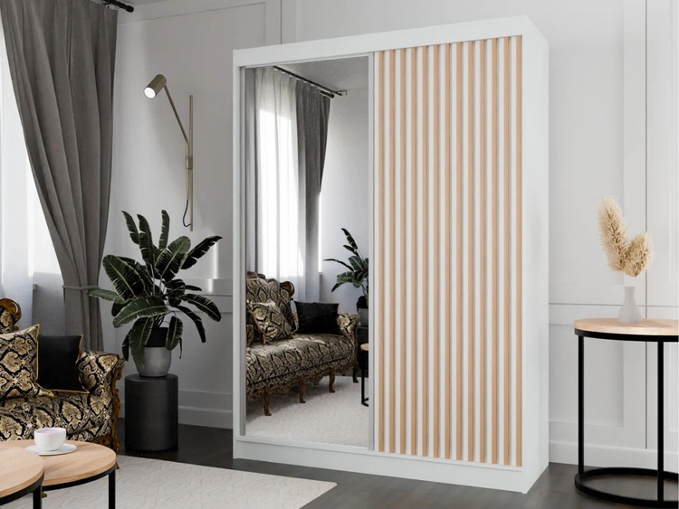 Schiebetürenschrank mit Spiegel und Lamellen 150 cm Loreto Weiß