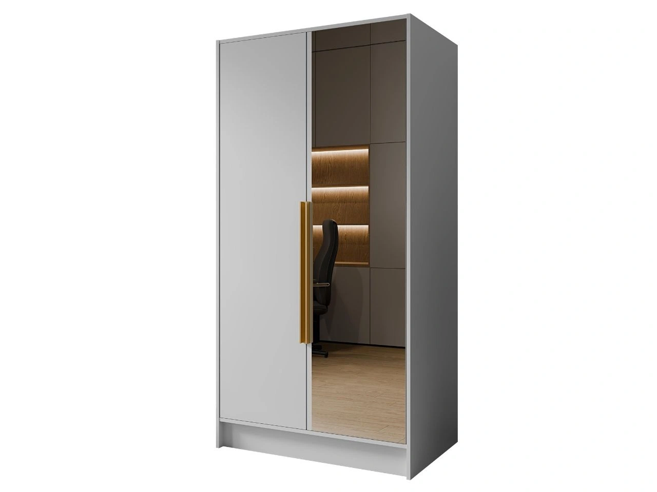 Kleiderschrank Lucca ist ein moderner und eleganter Schrank, der speziell für minimalistische und funktionale Wohnräume wie Schlafzimmer, Ankleidezimmer oder Homeoffice entworfen wurde. Die klare, geometrische Form mit glatten Fronten und einem Spiegel verleiht dem Möbelstück Leichtigkeit, vergrößert den Raum optisch und sorgt für mehr Helligkeit.