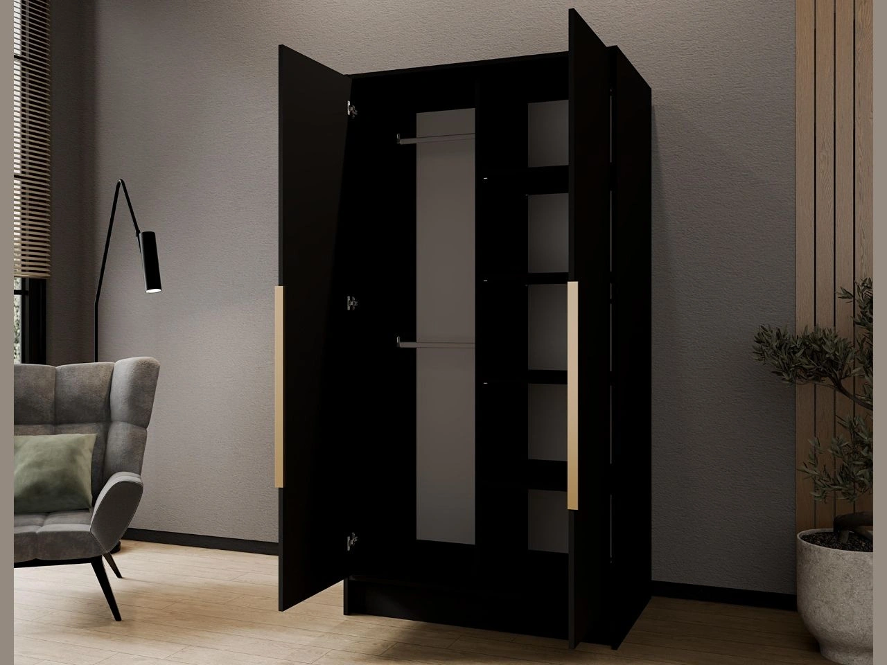 Kleiderschrank mit Spiegel 100 cm Lucca Schwarz mit goldenen Griffen