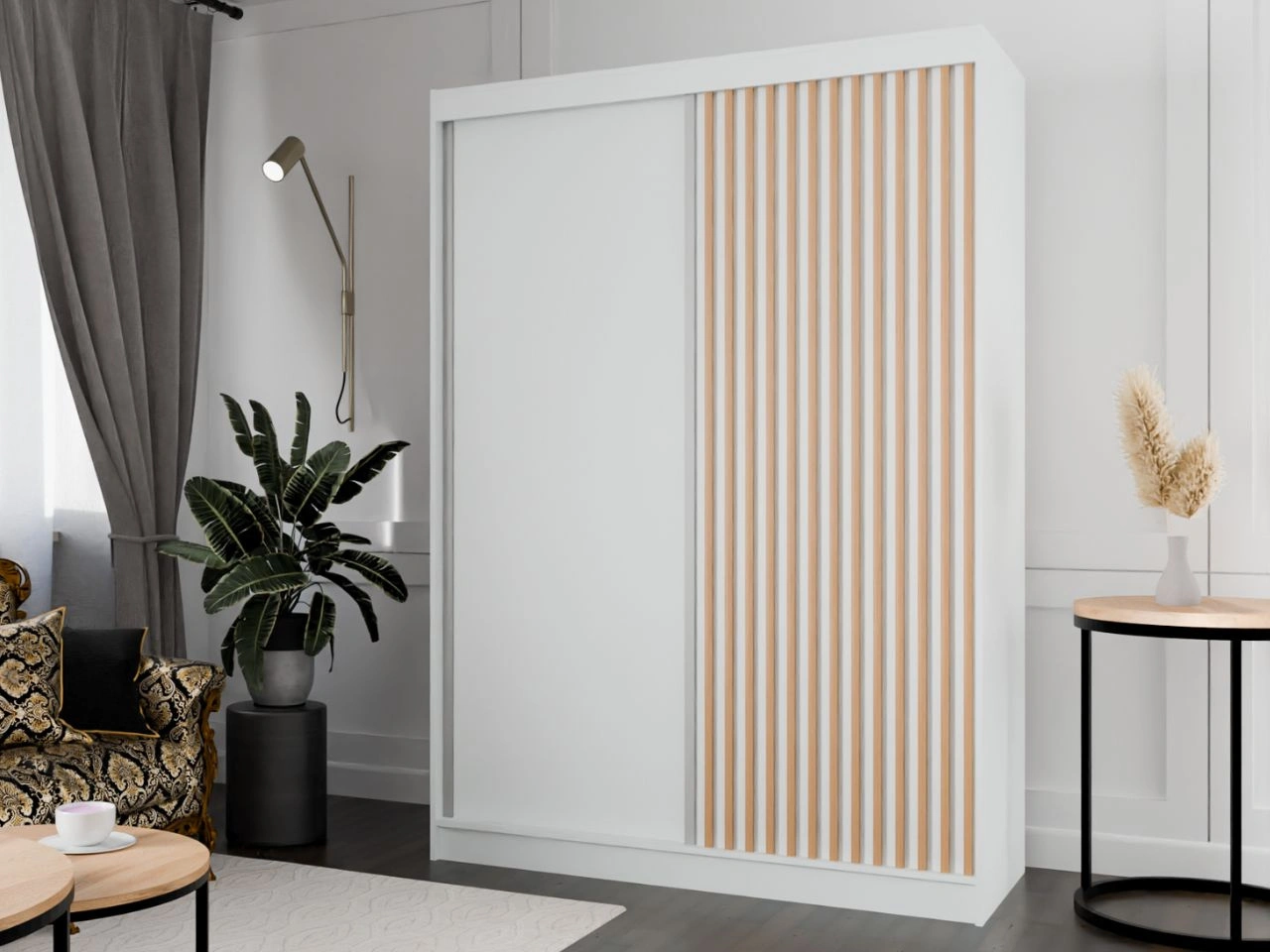 Schiebetürenschrank mit Lamellen 150 cm Loreto Weiß