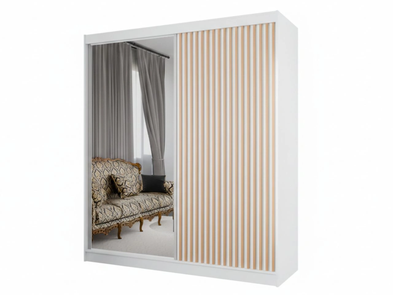 Schiebetürenschrank mit Spiegel und Lamellen 200 cm Loreto Weiß