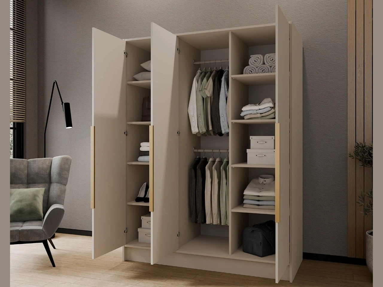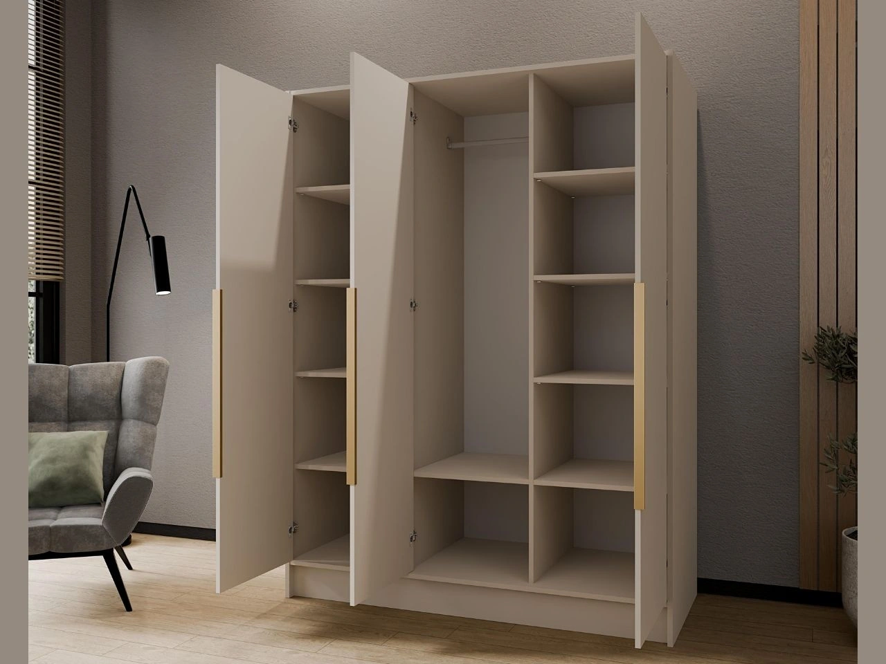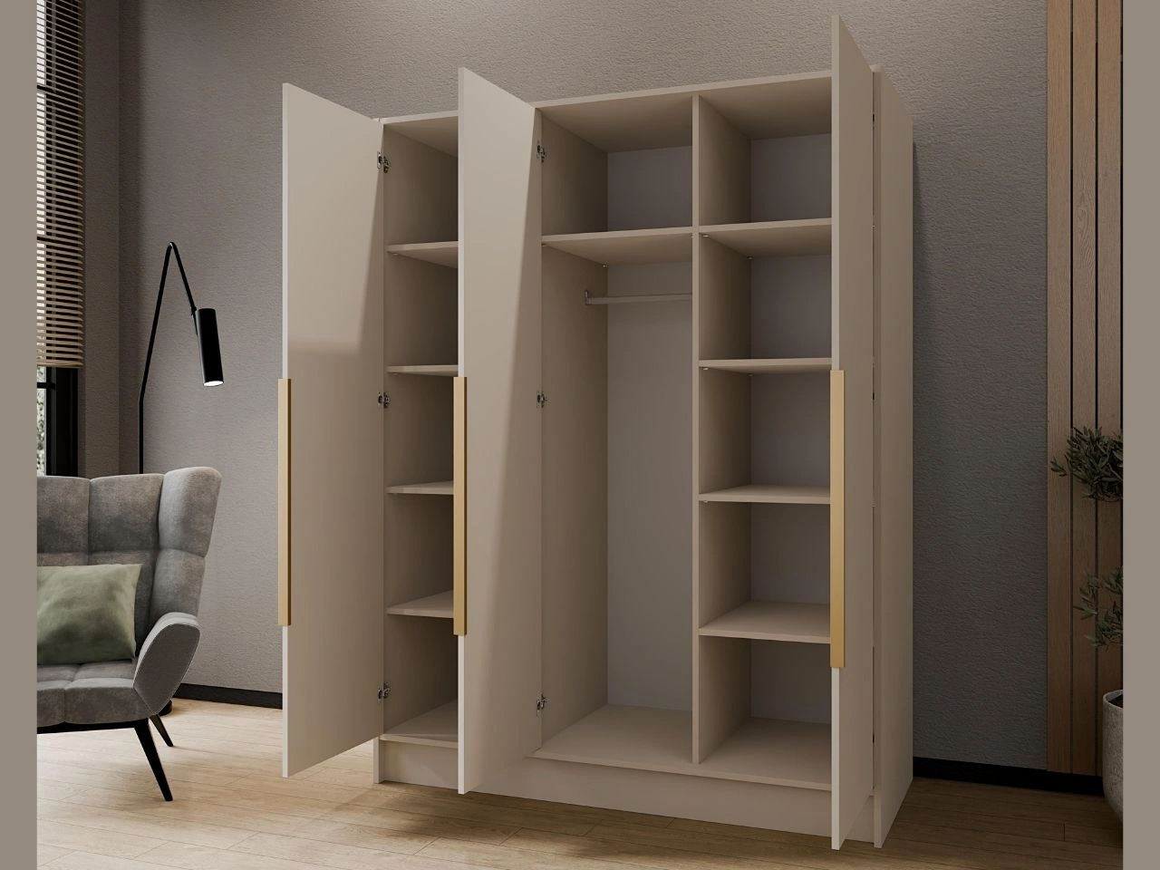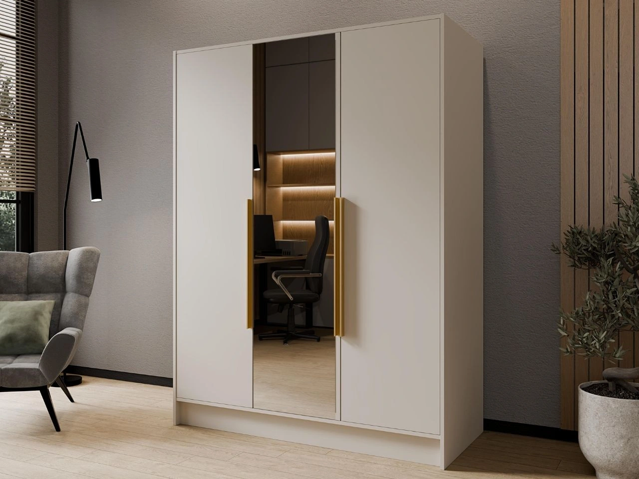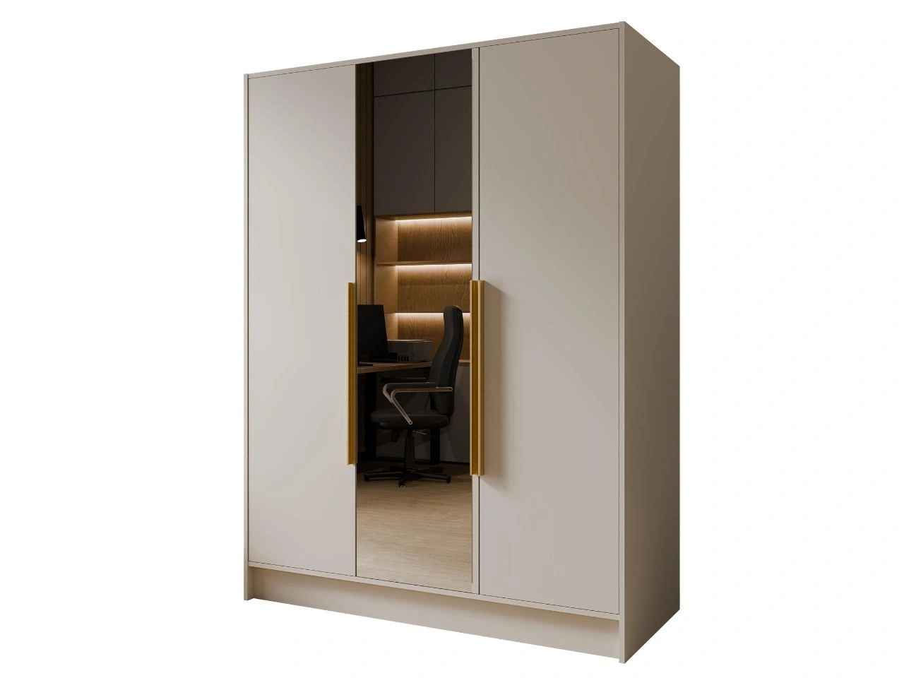 Kleiderschrank mit Spiegel 150 cm Lucca Kaschmir mit goldenen Griffen