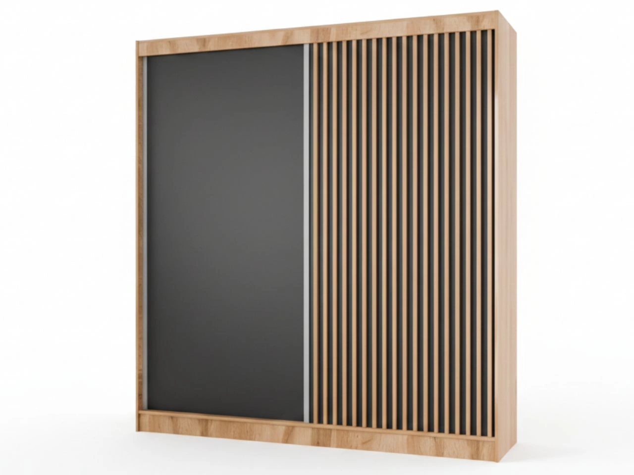 Schiebetürenschrank mit Lamellen 200 cm Loreto Handwerk Goldene Eiche, Schwarz