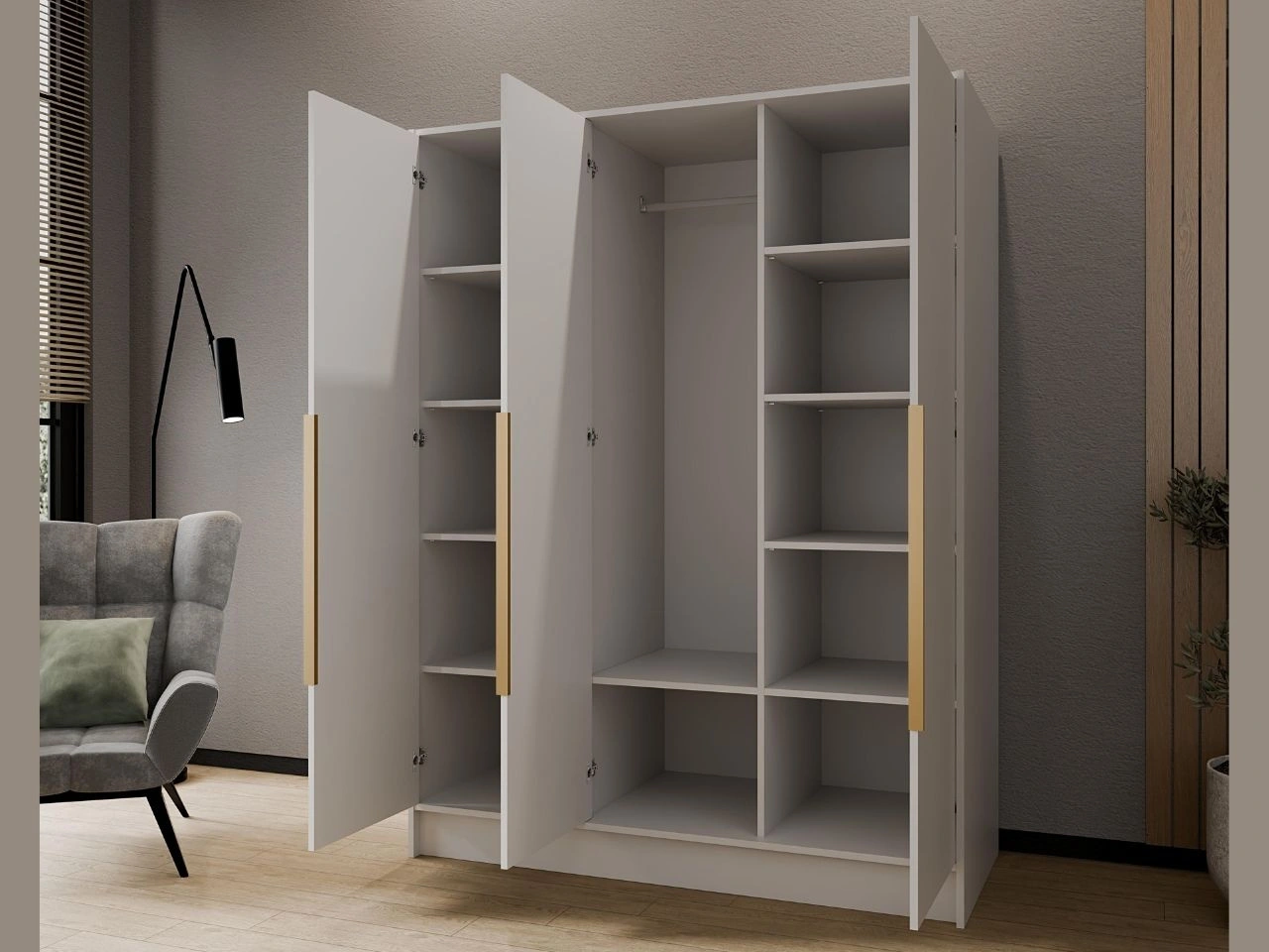 Kleiderschrank 150 cm Perugia Weiß mit goldenen Griffen