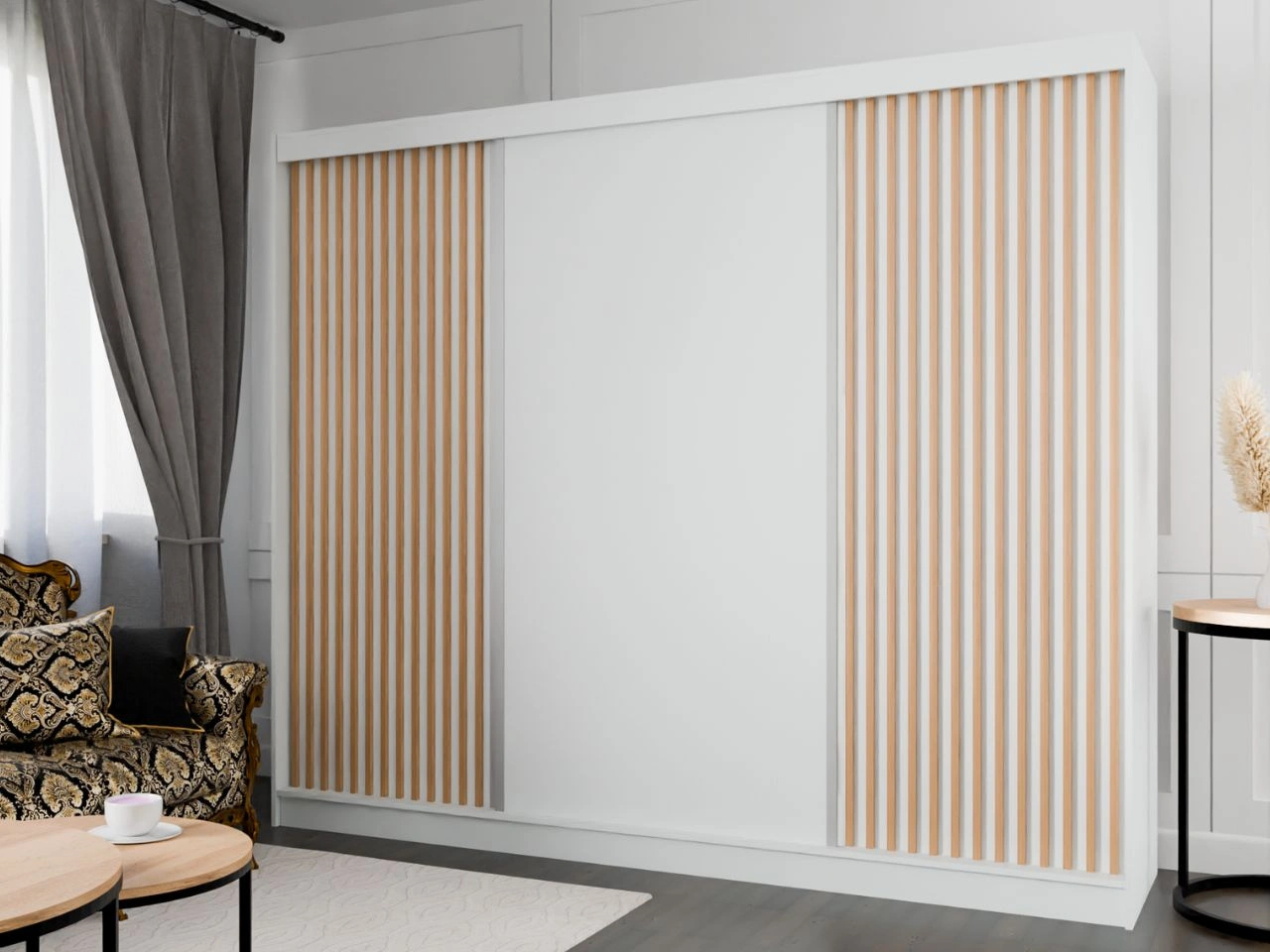 Schiebetürenschrank mit Lamellen 250 cm Loreto Weiß