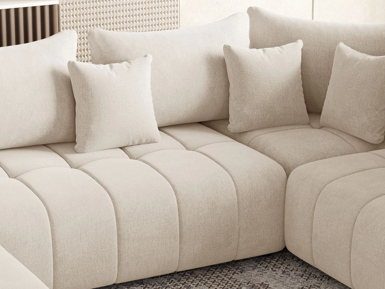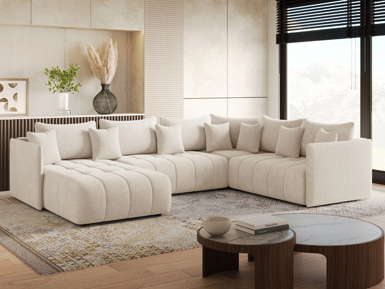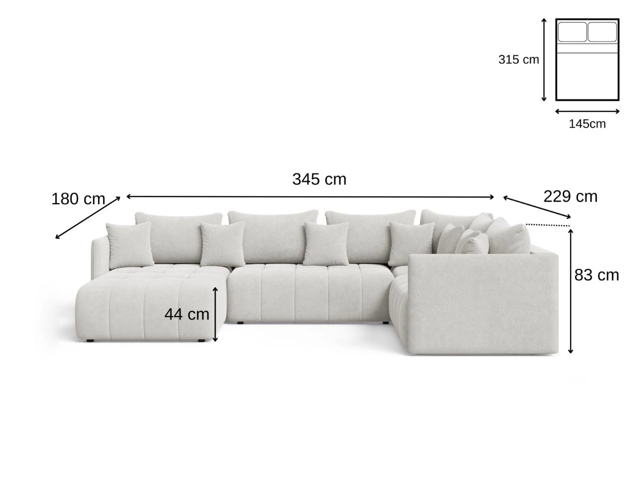 Ecksofa U Ardi Bis ist die perfekte Wahl für diejenigen, die nach einem Möbelstück suchen, das modernes Design mit außergewöhnlichem Komfort und Funktionalität verbindet. Dieses große U-förmige Ecksofa wurde für anspruchsvolle Kunden entworfen, die sowohl Ästhetik als auch praktische Lösungen in ihrem Interieur schätzen. Das Ardi Bis U ist mit einer Schlaffunktion ausgestattet, die eine Liegefläche von 145 x 315 cm bietet, was es zur idealen Lösung für Übernachtungsgäste macht.