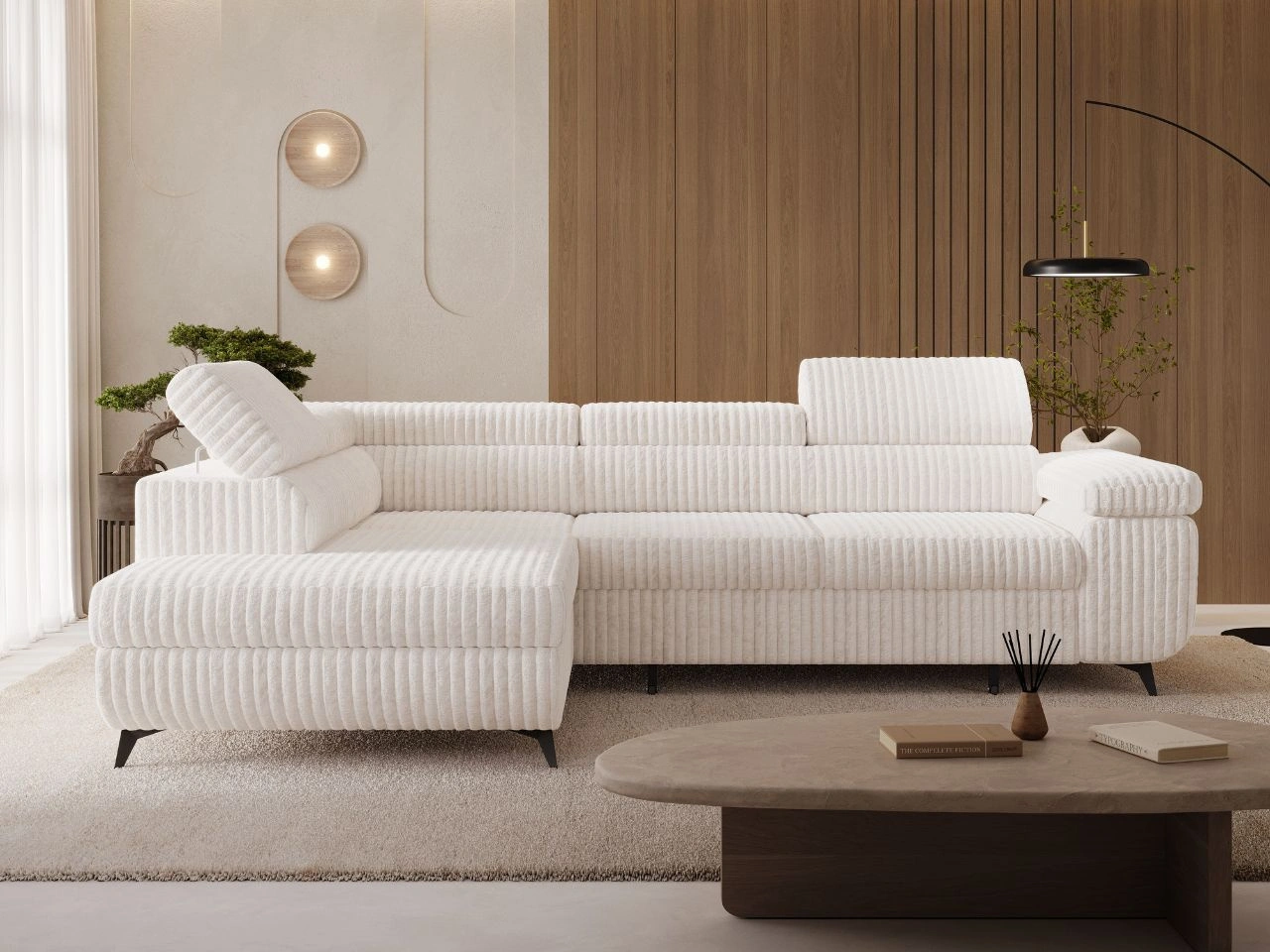 Ecksofa Argon mit Schlaffunktion und Bettkasten ist ein durchdachtes Designermodell, das sich perfekt sowohl in moderne, klassische als auch loftartige Wohnräume einfügt. Besonders hervorzuheben sind die verstellbaren Kopfstützen, die eine individuelle Anpassung und höchsten Sitz- und Liegekomfort ermöglichen. Doch das ist nur einer der vielen Vorteile dieses hochwertigen Möbelstücks.