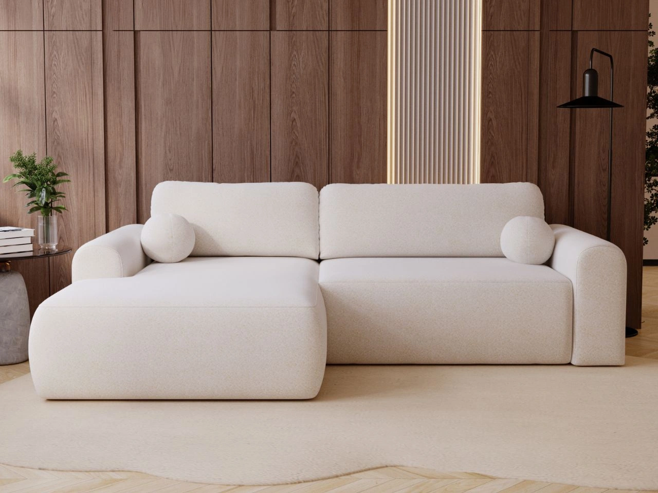 Ecksofa L-Form mit Schlaffunktion und Bettkasten Savana Links Bouclé-Stoff Weiß