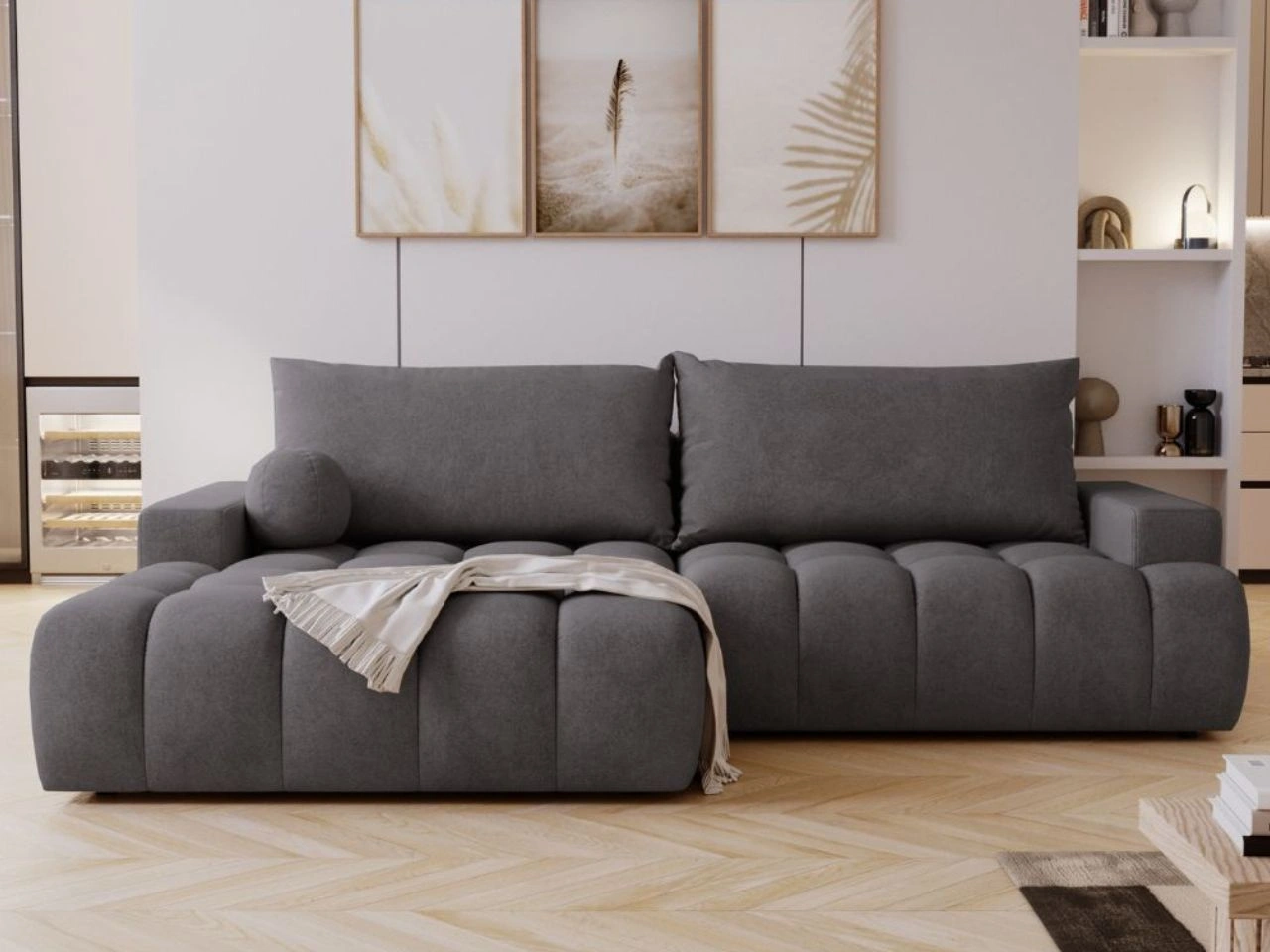 Ecksofa Havi ist eine ausgezeichnete Wahl für alle, die eine Kombination aus modernem Design, Komfort und praktischen Lösungen für den Alltag suchen. Ecksofa mit Schlaffunktion eignet sich sowohl als bequemer Ort zum Entspannen am Tag als auch als funktionale Schlafmöglichkeit für Haushaltsmitglieder oder Gäste.