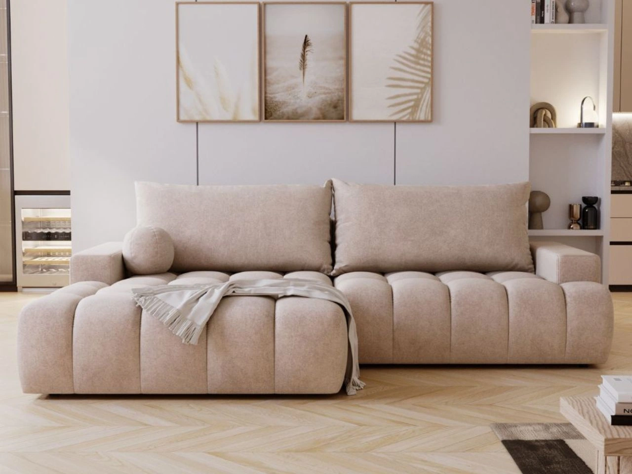 Ecksofa Havi ist eine ausgezeichnete Wahl für alle, die eine Kombination aus modernem Design, Komfort und praktischen Lösungen für den Alltag suchen. Ecksofa mit Schlaffunktion eignet sich sowohl als bequemer Ort zum Entspannen am Tag als auch als funktionale Schlafmöglichkeit für Haushaltsmitglieder oder Gäste.