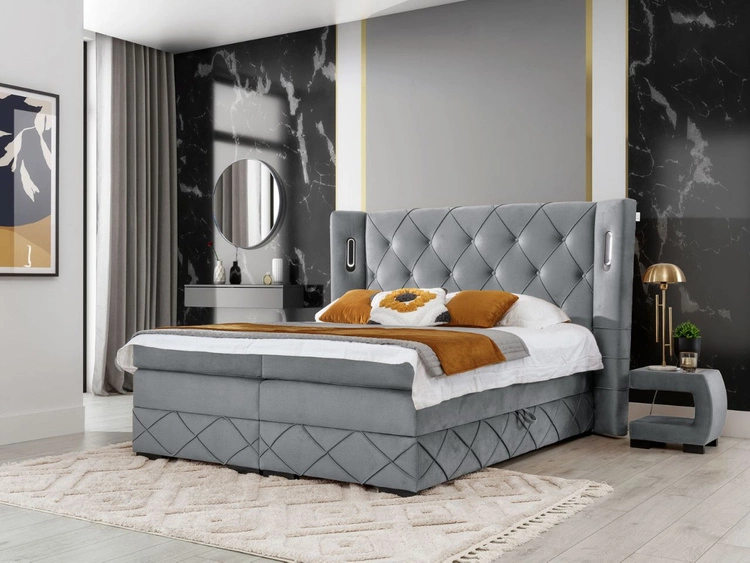Boxspringbett mit Bettkasten 160x200 Neria Lux Hellgrau