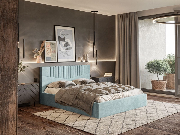 Polsterbett mit Lattenrost 160x200 Snazi Dunkelblau