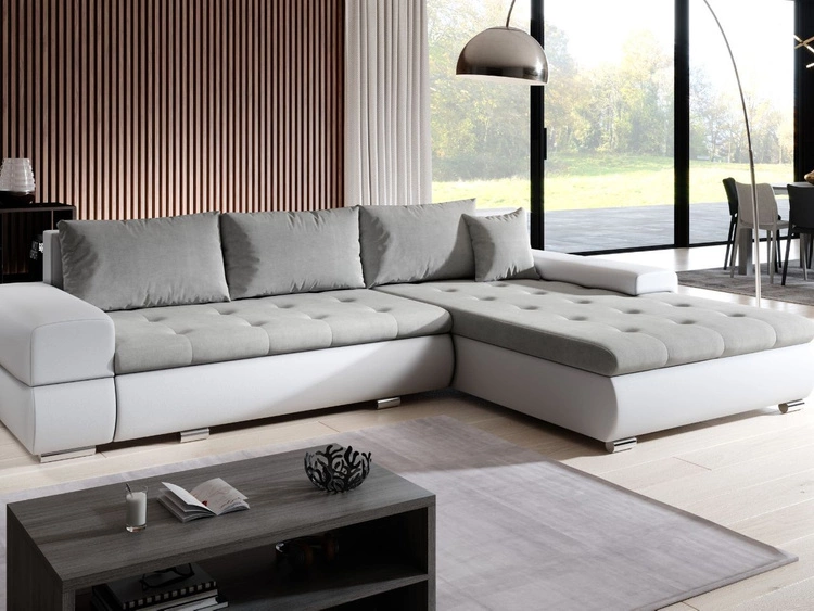 Ecksofa L-Form mit Schlaffunktion und Bettkasten Sonia Grau, Weiß