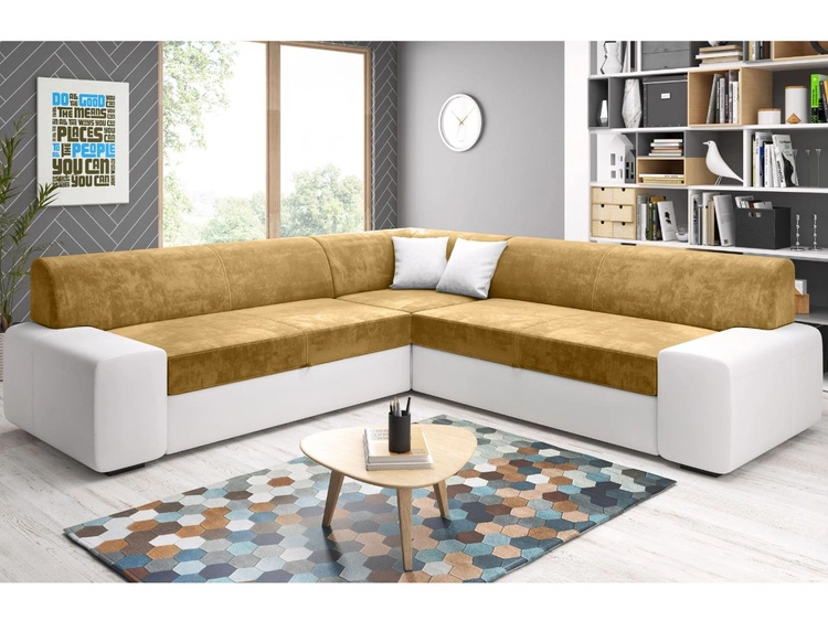 Ecksofa L-Form Rechts mit Schlaffunktion und Bettkasten Fresto Max Gelb, Weiß