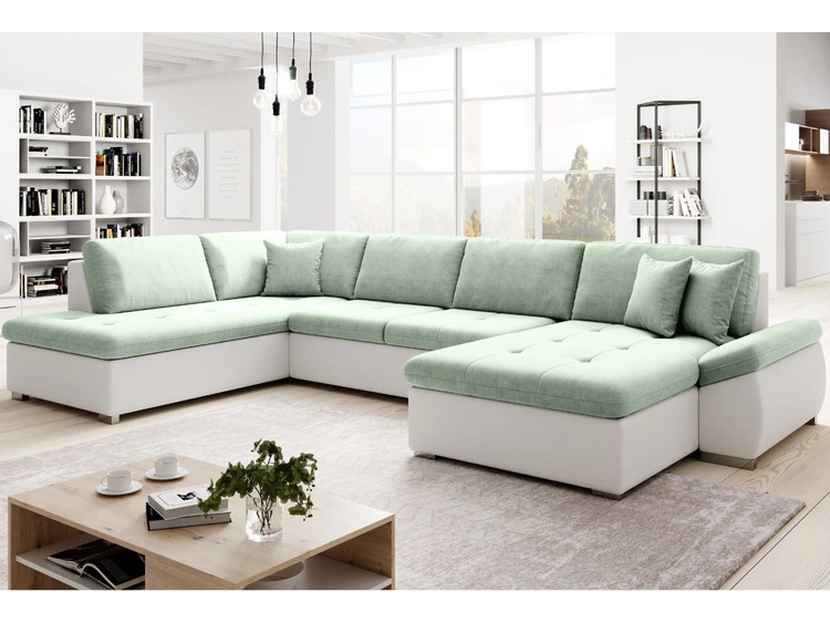 Anzahl der Produkte: 462Wohnlandschaft mit Schlaffunktion Links Moni U Hellgrün, Weiß
