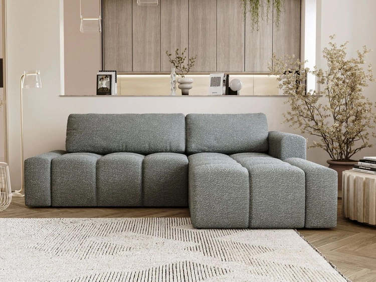 Ecksofa L-Form Rechts mit Schlaffunktion und Bettkasten Limon Grau