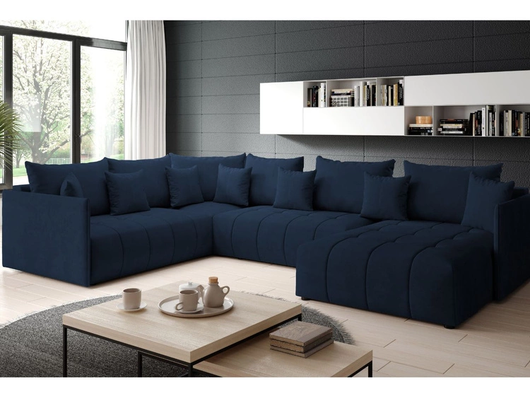 Wohnlandschaft mit Schlaffunktion und Bettkasten Decor U Dunkelblau