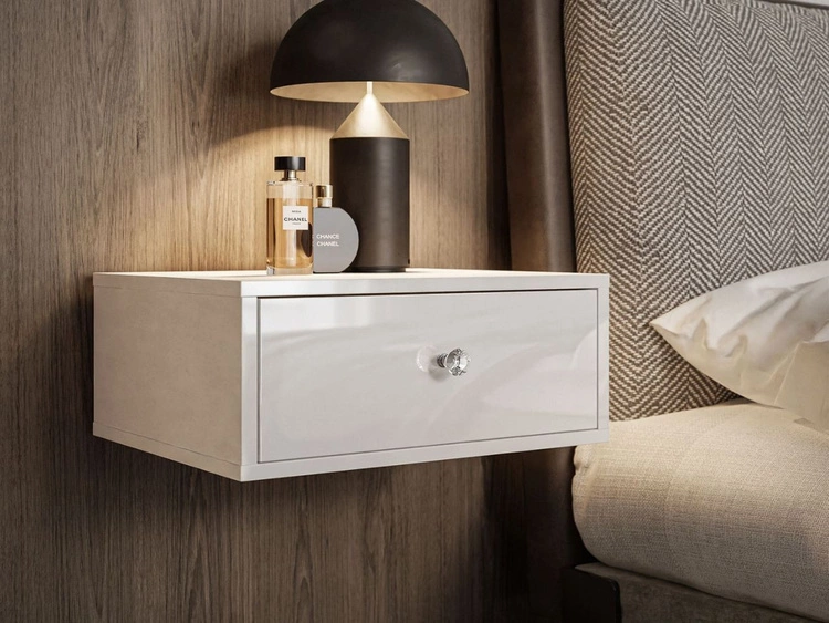 Hängender Nachttisch mit Schublade und Kristallgriff Brisa Weiß Hochglanz