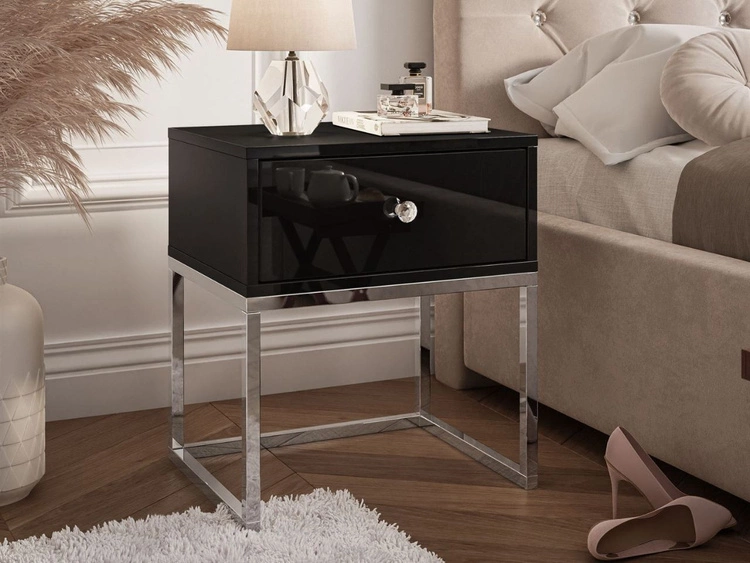 Anzahl der Produkte: 120Nachttisch Glamour mit Schublade und silbernen Gestell Brisa Schwarz Hochglanz