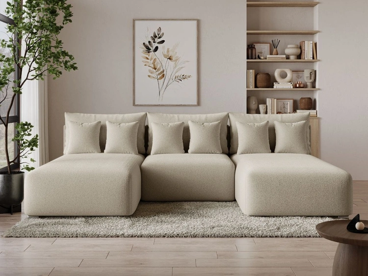 Ecksofa U mit Schlaffunktion und Bettkasten Ronni Beige