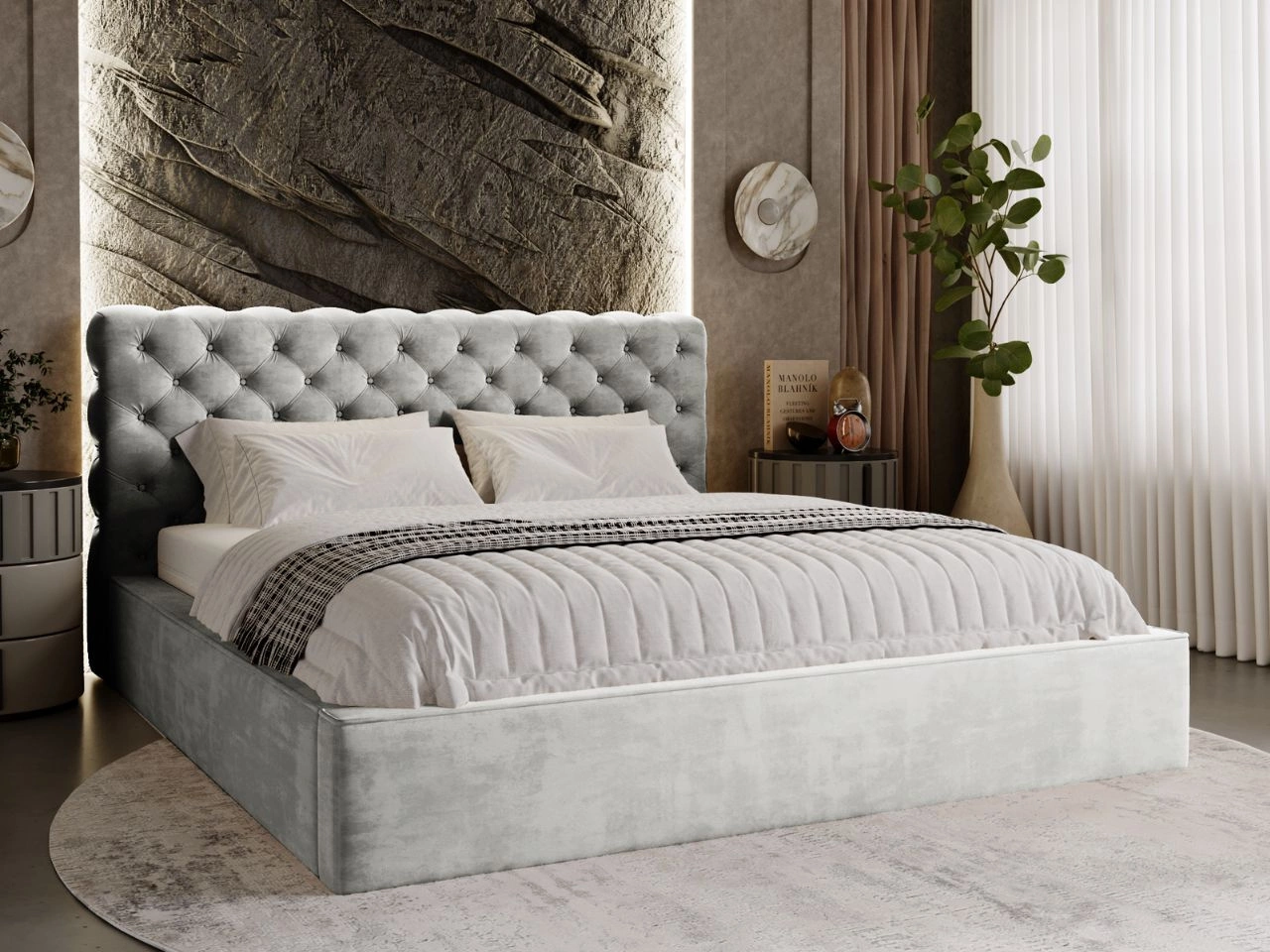 Polsterbett mit Bettkasten und Lattenrost 140x200 Mali Hellgrau