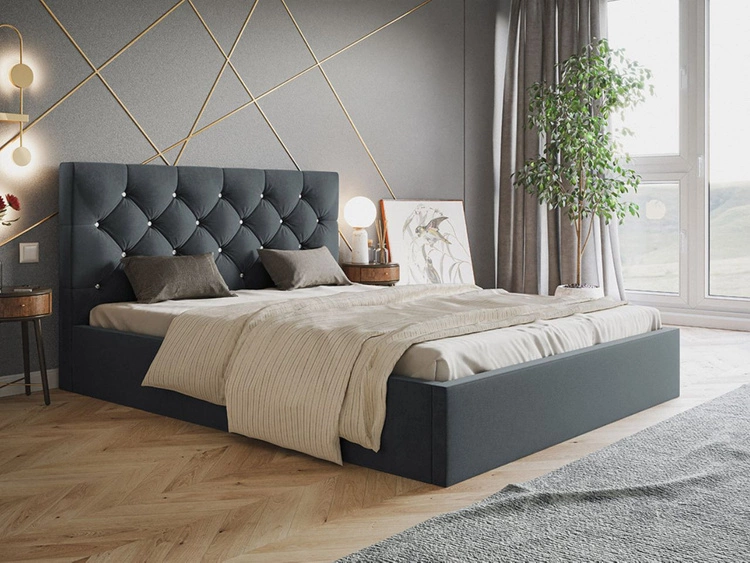 Polsterbett mit Bettkasten und Lattenrost 160x200 Tesis Dunkelgrau