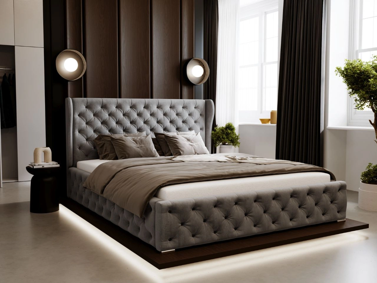 Polsterbett mit Bettkasten und Lattenrost 160x200 Kingston Grau