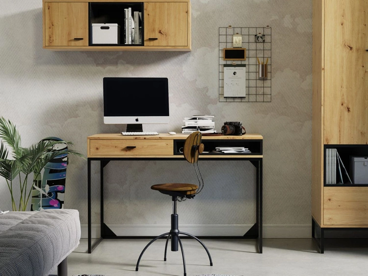 Der Geneva Schreibtisch mit Schublade auf Metallbeinen Artisan Eiche überzeugt durch seine puristische Eleganz und praktische Funktionalität. Die einzelne Schublade bietet Platz für die wichtigsten Arbeitsmaterialien, während die großzügige Arbeitsfläche ausreichend Raum für verschiedene Lernaktivitäten schafft. Das industriell inspirierte Design mit den charakteristischen Metallbeinen verleiht dem Arbeitsplatz eine zeitgemäße Note.