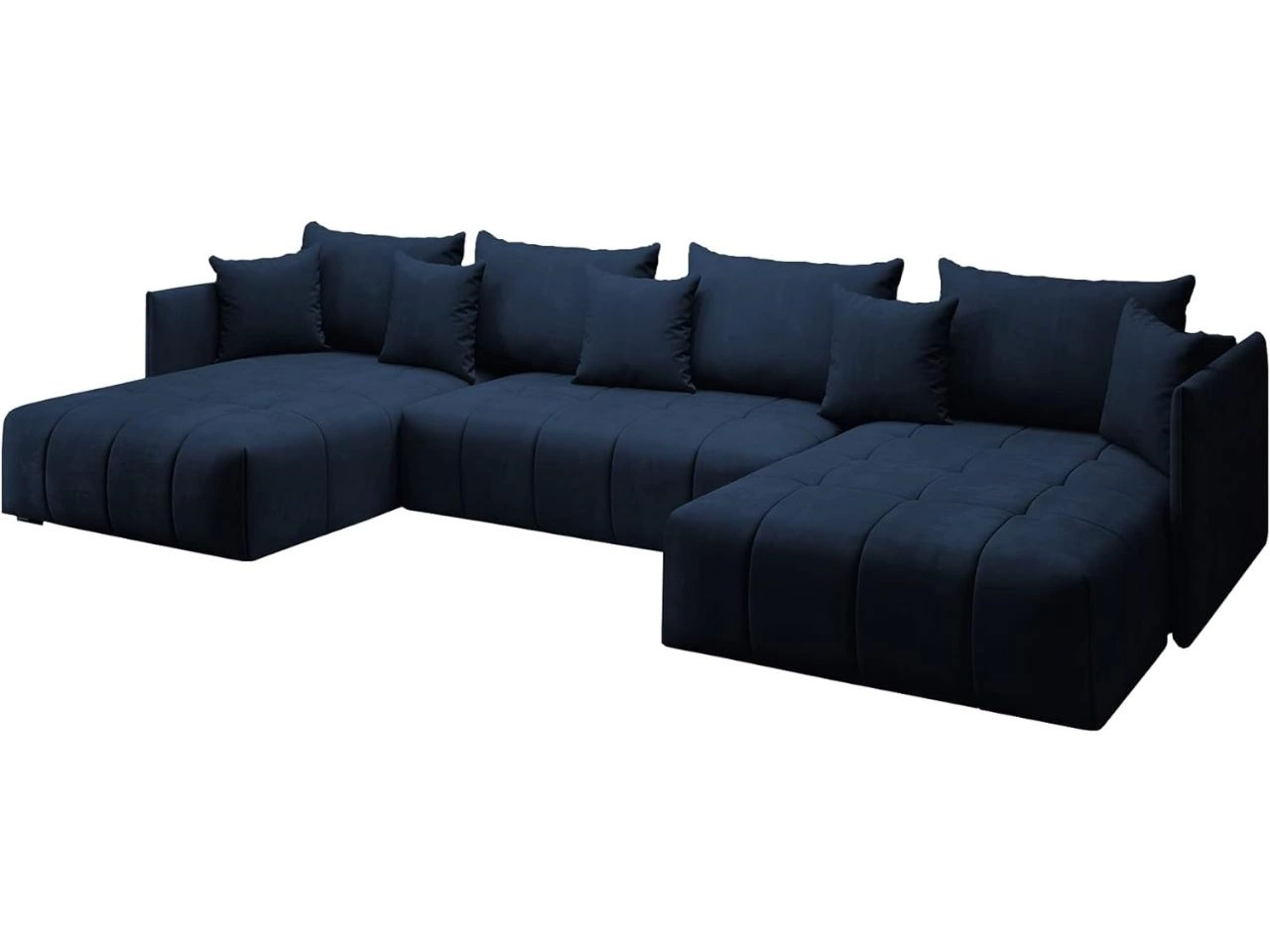 Diese großzügige U-förmige Wohnlandschaft in tiefem Dunkelblau repräsentiert den Trend zu statement-starken Farben und maximaler Funktionalität. Perfekt für große Familien oder als zentrales Element in geräumigen Wohnbereichen.