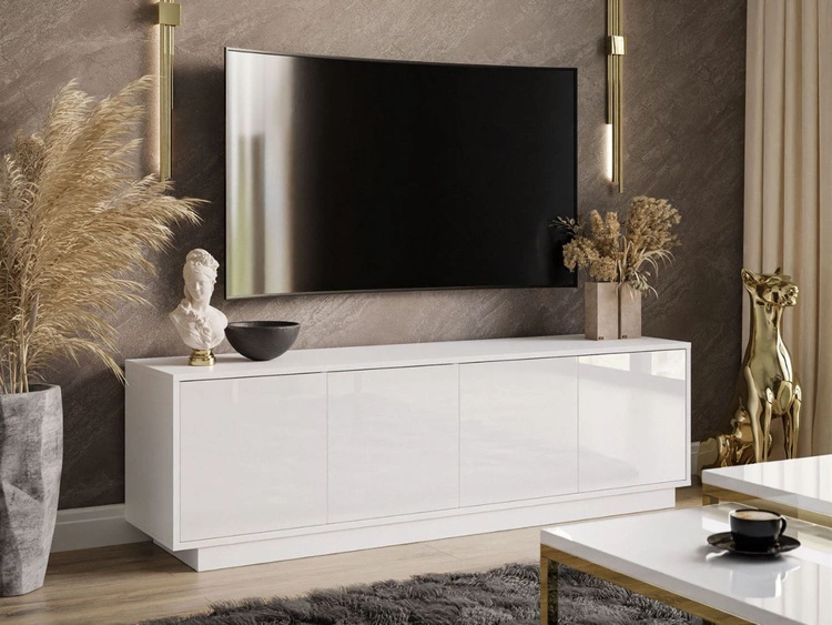 TV-Lowboard mit zwei Türen auf goldenen Beinen 175 cm Sorelle Weiß Hochglanz