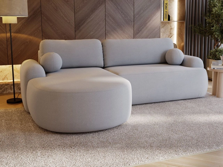 Ecksofa L-Form Links mit Schlaffunktion und Bettkasten California Hellgrau