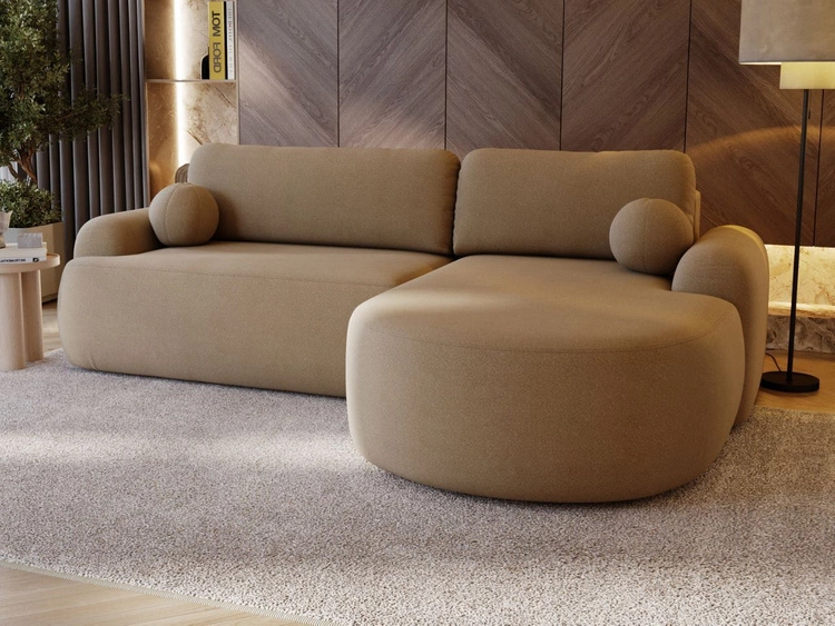 Ecksofa L-Form Rechts mit Schlaffunktion und Bettkasten Aurio Hellbraun