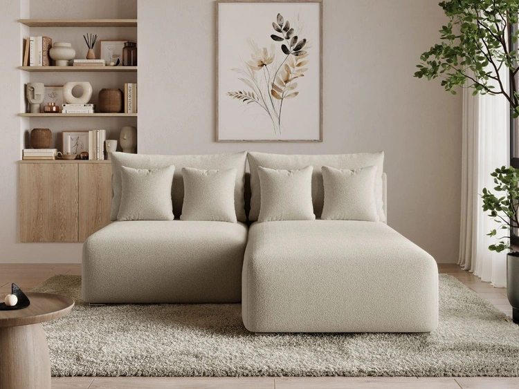 Ecksofa L-Form Rechts mit Schlaffunktion und Bettkasten Ronni Beige